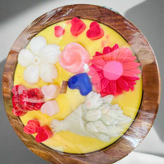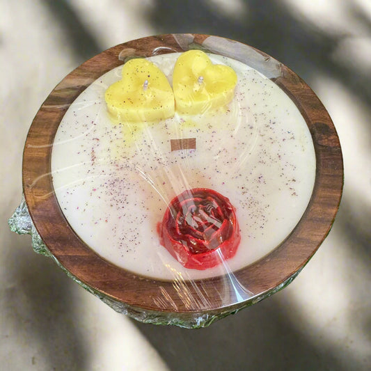 Wooden Scented Candle with Little Hearts and Rose Design