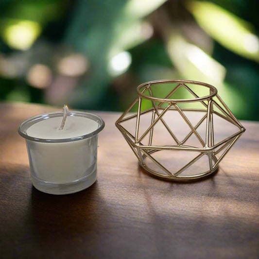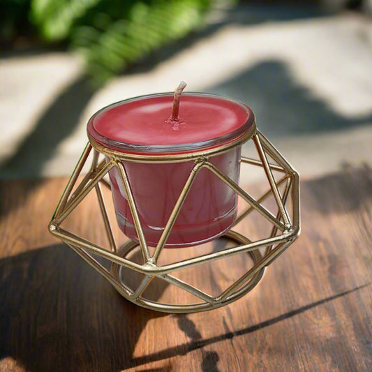 Glass Candle with Metal Geometric Holder