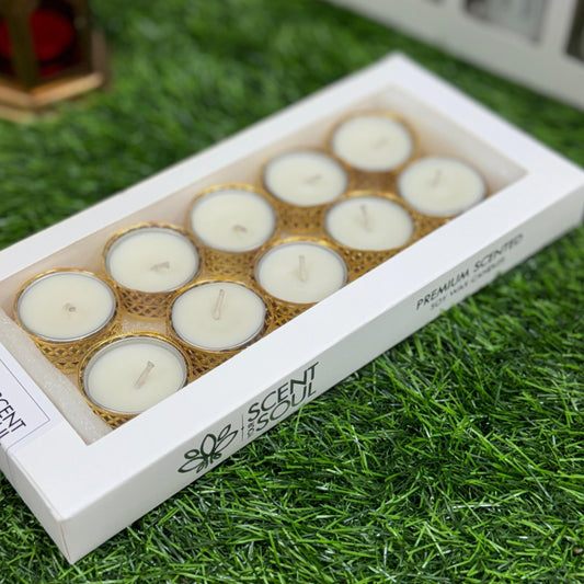 Decorative Tealight Candles with Golden T-Light Holders (Pack of 6)