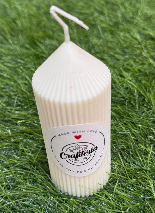 Pure Soy Wax Ribbed Cylinder Pillar Candle Large - Crafiteria